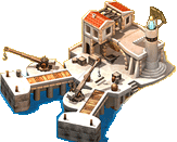 Клацніть на вільному місці для будування на мапі міста. Потім Ви отримаєте список доступних споруд. Будь ласка зауважте, що існує 2 спеціальних будівельних зони (синій прапорець) а також одна спеціальна зона для будування міської стіни (жовтий прапорець).